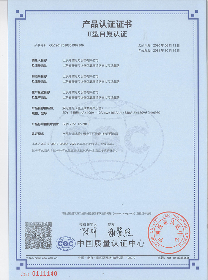 山東開誠電力設(shè)備有限公司坐落在泰山腳下,是以生產(chǎn)各類高中低壓成套電力設(shè)備、箱式變電站、預(yù)制艙、電纜橋架及 PLC 電氣自動(dòng)化系統(tǒng)等為主的企業(yè)。